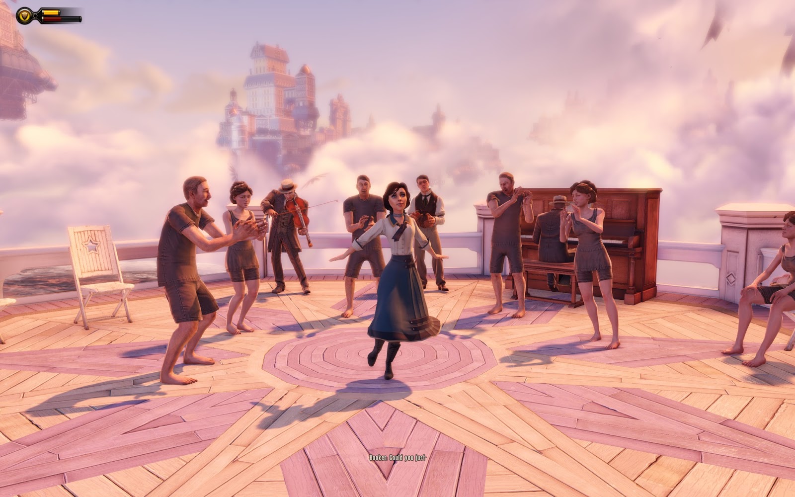 게임상에서는 이 당시 '콜롬비아'가 중국인들을에게 사격을 가하게 되고, 이를 통해서 '콜롬비아'가 실은 단순한 공중 도시가 아닌 공중요새라는 것이 밝혀지게 됩니다.