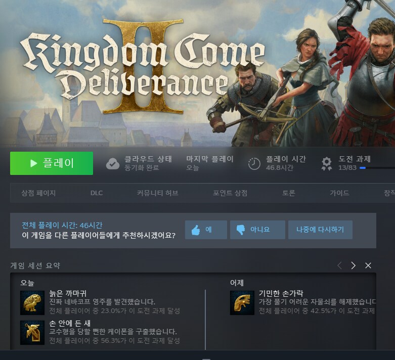[◆ 게임 종합(PC, Mobile)] 킹덤컴2 초반 넘기니 재미가 붙어서 시간 가는 줄 모르네요2026.01.11 PM 11:54