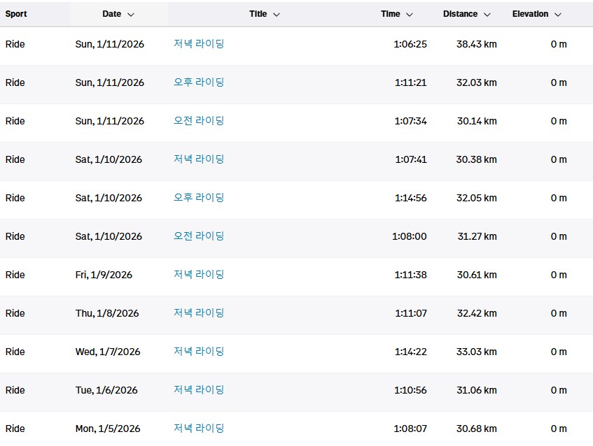 [★멸치 홈트레이닝★] 이번 주 라이딩 352.14km (2026년 총 545.02km)2026.01.11 PM 11:13