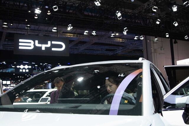 올해 상하이 오토쇼에서 자동차 제조사 BYD가 5분 만에 거의 완충되는 배터리를 시연했다. (사진: NurPhoto/게티이미지)