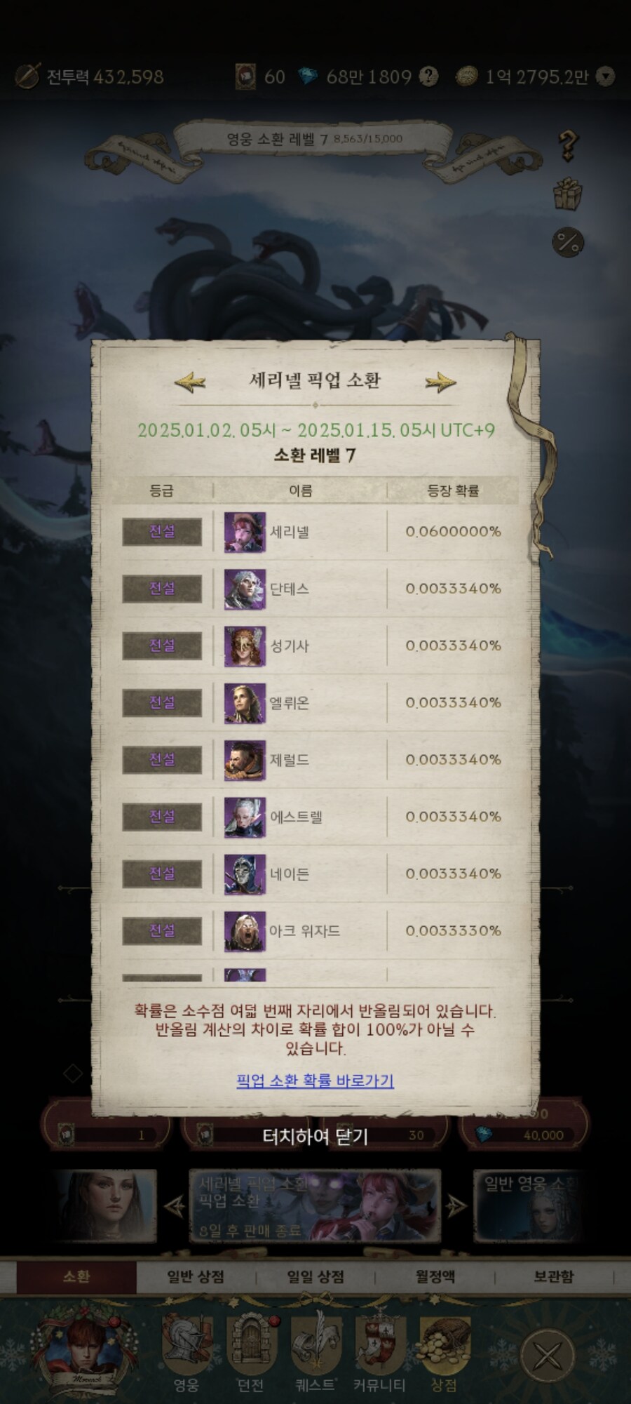 오히려 저 확률로 픽업캐릭 하나 뽑은게 레전드네ㅋㅋㅋㅋㅋㅋ