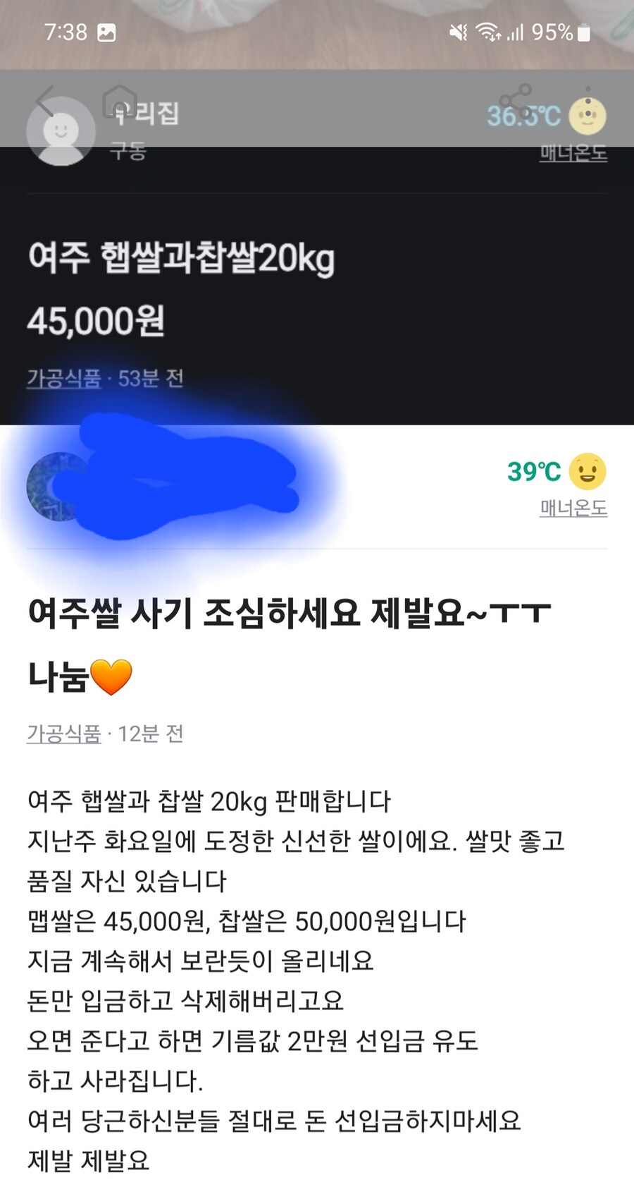 쌀 사기 조심요...
