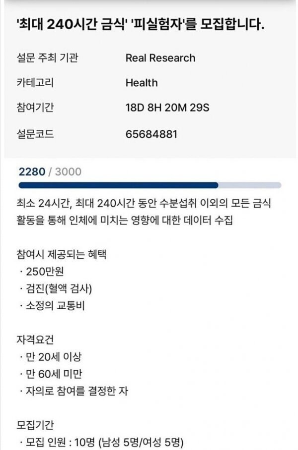 10일 금식이면 돈 더줘야 하는거 아닌가? ㄷㄷ