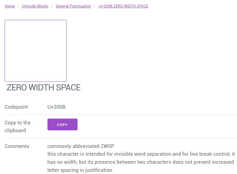 유니코드 200B : ZWSP라고 폭이 없는 스페이스라고 하네요...