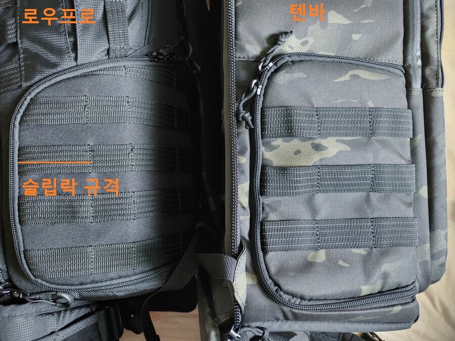 슬립락은 그 너비가 경쟁사 대비 넓어. 이 말인 즉, 로우프로에서 나온 슬립락 보조가방을 타사 가방에 부착할 수 없어. ‘텐바’, ‘씽크탱크포토’ 가방의 몰리 구멍크기가 작아서 로우프로 슬립락 심지가 안 들어가. 반대로 텐바와 씽크탱크포토에서 나온 몰리 보조 가방을 로우프로 배낭에 결착하기는 쉬워.