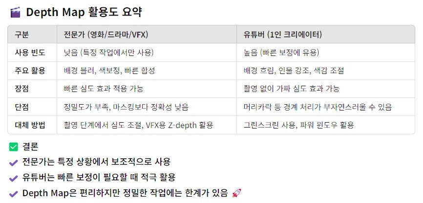 AI를 통해 영상의 깊이를 확인하고, 전경과 배경을 분리하여 영상 편집을 돕는 도구구나. 배경 흐림, 배경 색보정, 배경 합성, 반대로 주 피사체 강조 등으로 써먹을 수 있는 기능.
