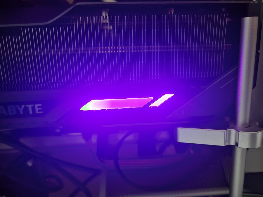 LED 유무, RGB색상은 '기가바이트 컨트롤 센터 (GCC)' 앱으로 조절할 수 있습니다. GCC 앱을 켜야 설정이 유지되더군요. (GCC 설치 - LED 끔 - GCC 삭제 = 카드에서 설정을 기억하지 못 하고 다시 LED에 불이 옴)