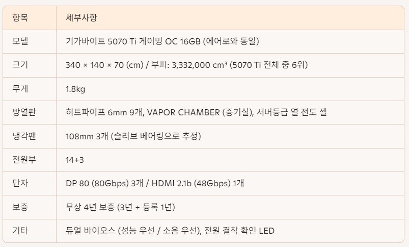이상, 기가바이트 5070 Ti 게이밍 OC. 만족합니다.