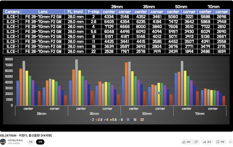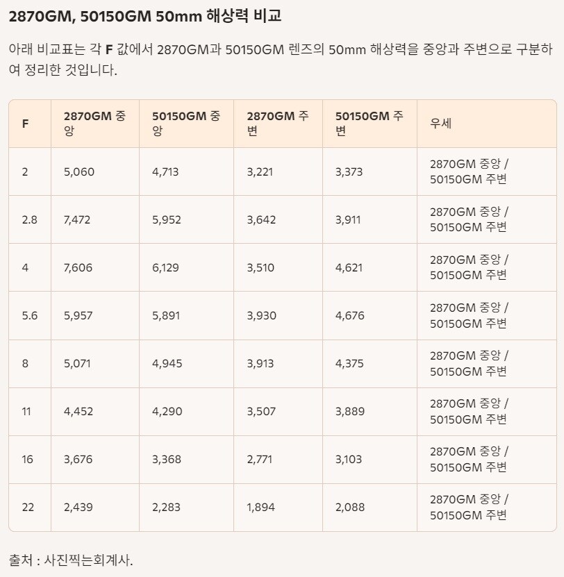 사진 찍는 회계사님이 두 렌즈 해상력을 비교해 놓은 자료를 남기셨어.