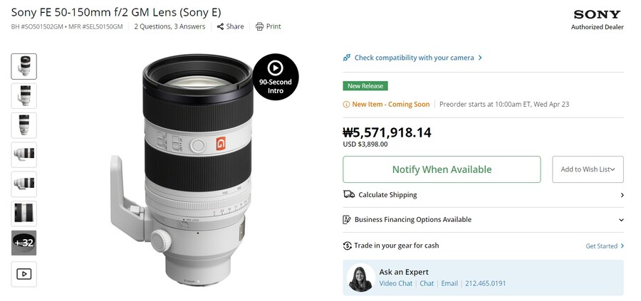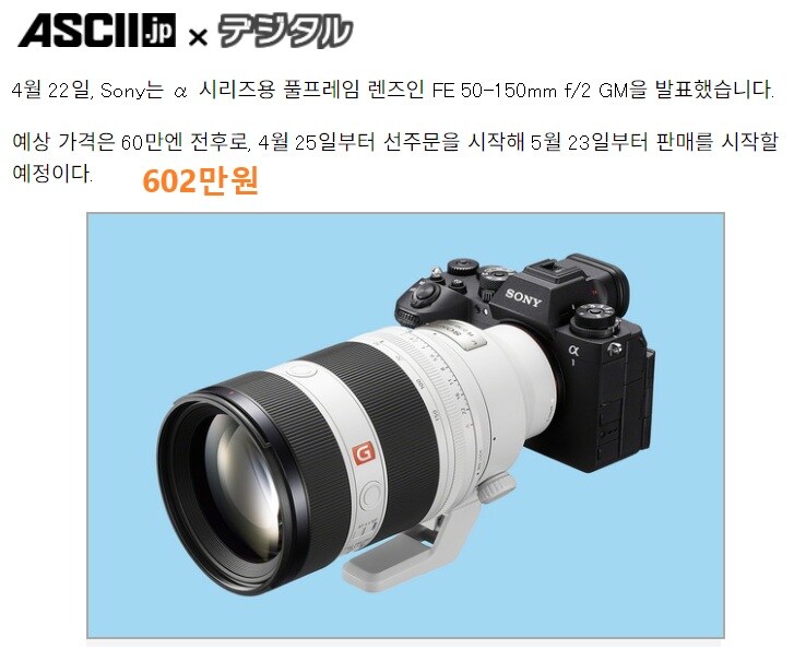 소니가 어제 FE 50-150mm F2 GM을 공개했어.