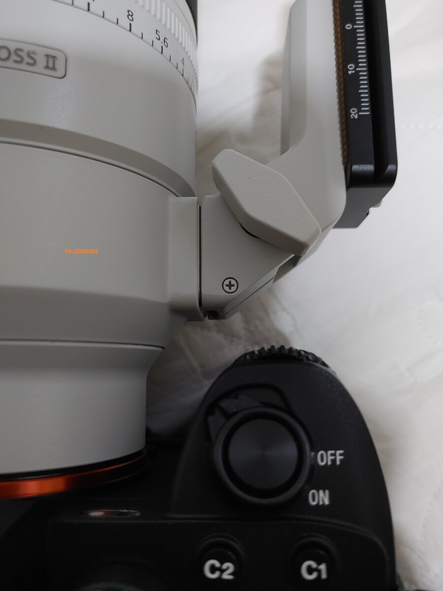 예시 사진은 70-200GM2. 삼각대 다리를 파지부로 향한 경우, 저 사이로 손가락을 간신히 집어넣을 수 있어. 손가락이 두꺼우신 분, 촉감에 민감하신 분은 카메라를 못 쓸 지경이야.