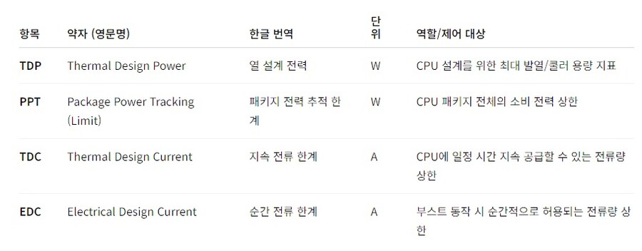 내가 원래 생각했던 전력제한 값, CPU가 실제로 소비하는 전력 값은 PPT를 봐야 하구나.