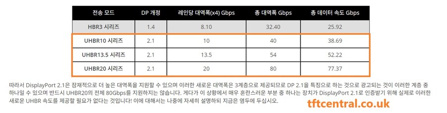 같은 DP 2.1이라 하더라도 대역폭이 2배까지 납니다. 그래서 DP2.1만 달랑 표기해서는 소비자가 성능을 구분할 수 없습니다.