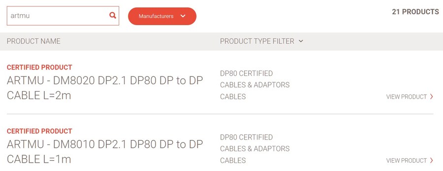 반면 아트뮤는 VESA 인증 사이트에서 ARTMU라고 검색하면 제품이 바로 뜹니다. 다만 제품명을 눌러도 제품 사진이나 정보가 뜨지 않는 점은 아쉬웠습니다.