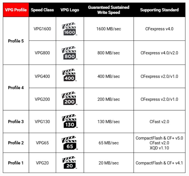 다음, VPG란? Video Performance Guarantee의 약자로, 비디오 촬영 시 보장하는 지속 쓰기 속도를 말해.