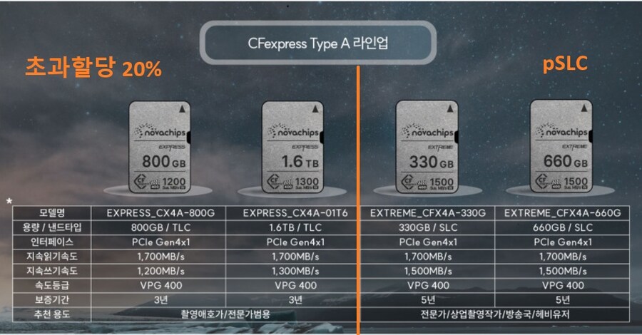 이해를 돕기 위해, 노바칩스 제품으로 초과할당과 pSLC를 따져볼까요.