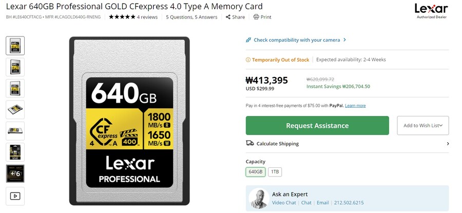 내가 만약 소니 카메라용 CFE 4.0 A 메모리카드를 사야 한다면, 렉사 골드 640GB를 사고 싶어.
