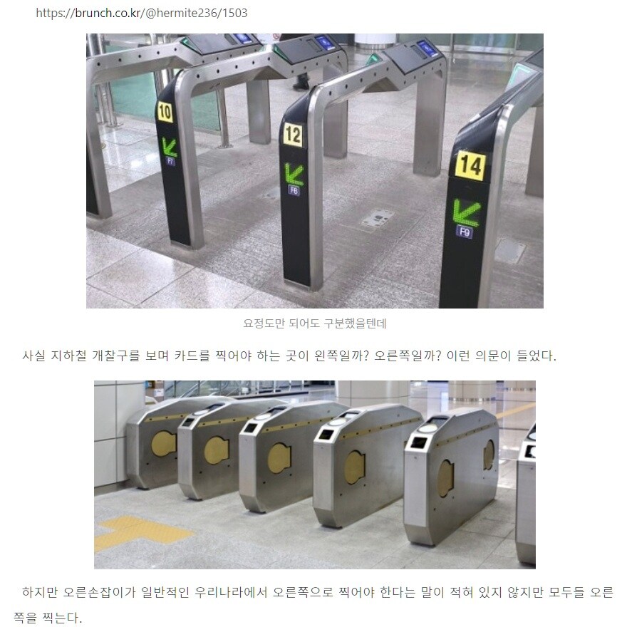 개찰구 좌우에 대해 의문을 제기했어. ..그나저나 첫 번째 사진의 개찰구는 승객이 입구를 헷갈리지 않겠구나. 부산 및 전국에 첫 번째 형태의 개찰기가 설치되면 좋겠습니다. (부산지하철은 두 번째 형태)