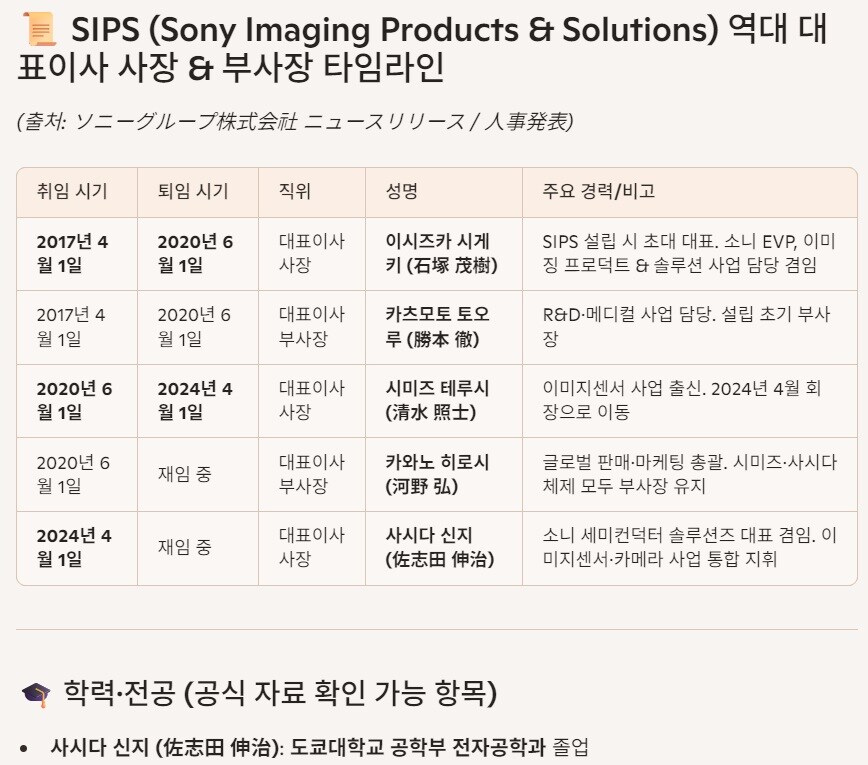 내 얼마나 소니의 행태에 실망을 했으면, 내부 경영진 구성까지 의심했어. 소니가 2024년부터 슬슬 배짱장사를 시작했다고 보거든? 그런데 마침 2024년 4월 1일 부로 SIPS 사업부 사장이 ‘사시다 신지’로 바뀌었더군.