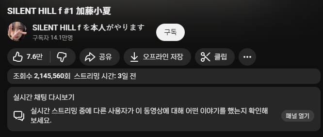 사일런트 힐 f 게임 방송을 켜게 됨.