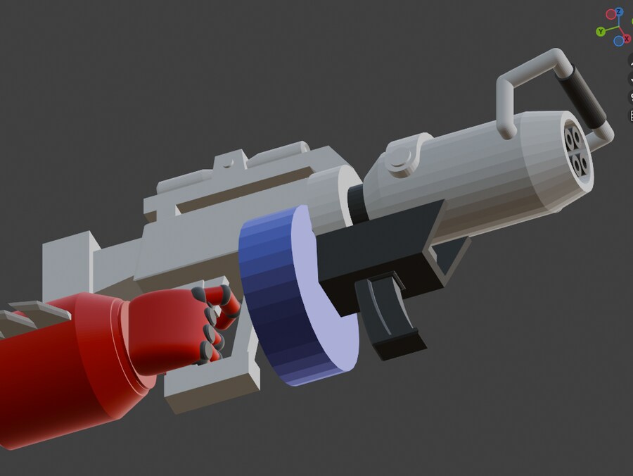 기존에 달아뒀던 손 모델은 다른분이 작업하신 슈퍼계열 로봇손에서 떼온거라 포징을 줄 수가 없었기에 무기를 만들면서 손도 새로이 모델링했습니다.