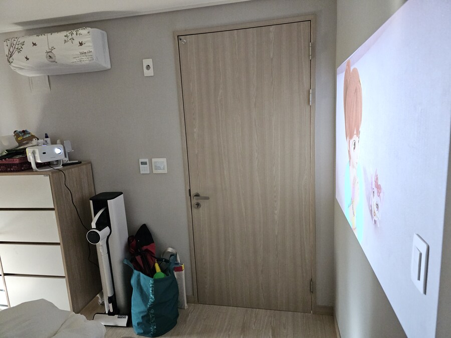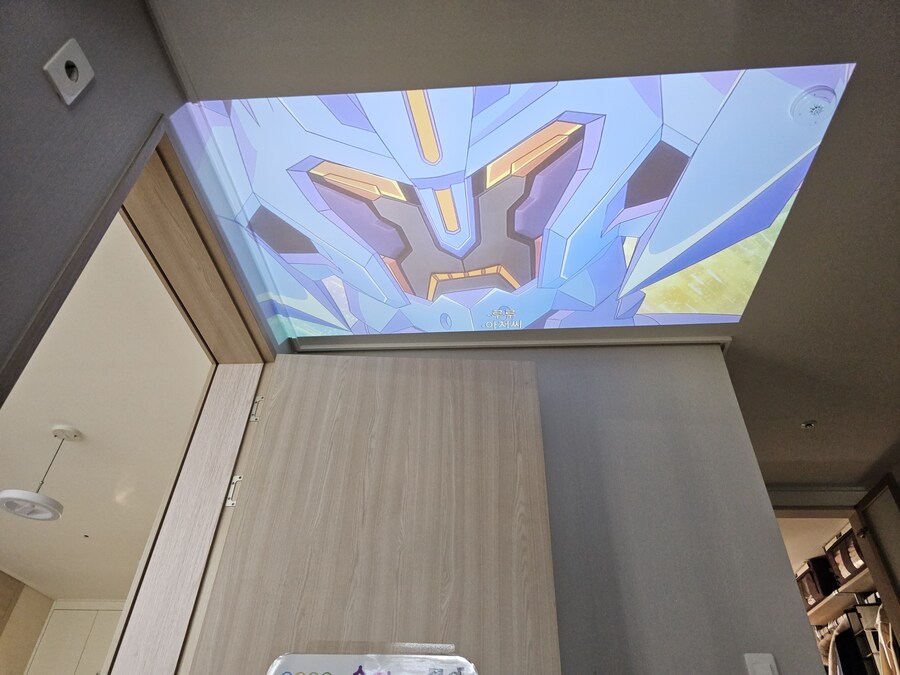 천장투사가 더 깔끔해보이긴 하는데 저는 완전히 누워서 뭔가를 보는게 어색해서 그냥 벽투사로 쓸 것 같아요.