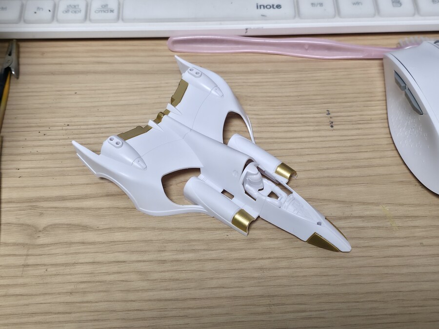 카울을 얹어보면 이렇게 새하얀 롤아웃 컬러의 아스라다가 됩니다.. 만 너무 하얘서 아스라다인지 뭔지 모르겠네요.