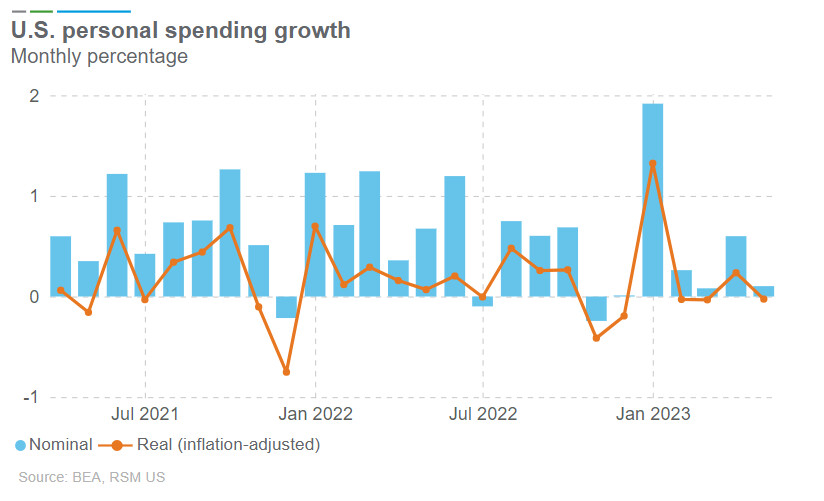 실질 개인소비도 0.0%...시장 예상(0.1%)을 밑돌아 정체 수준