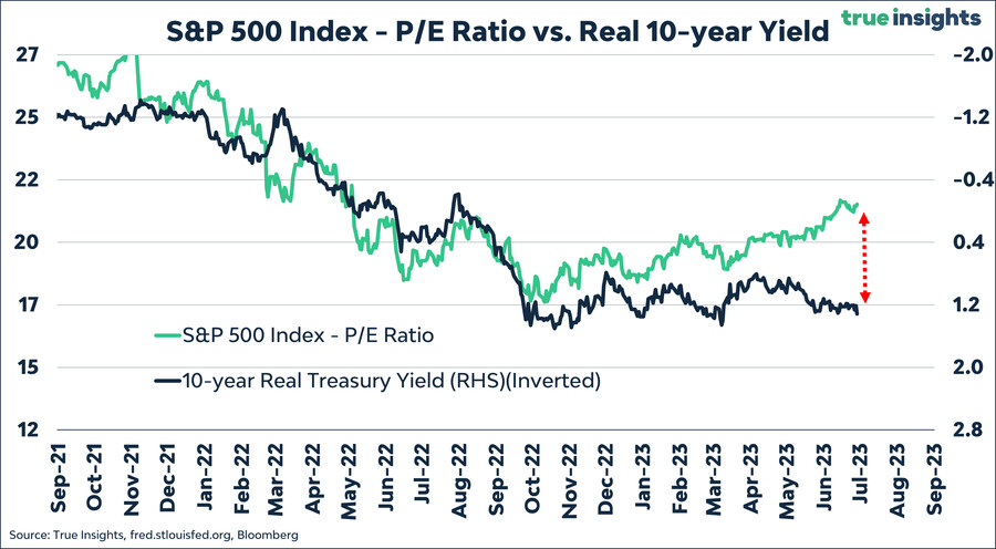 금리가 올라간다면 통상 주가에 부정적입니다. 특히 기술주가 그렇습니다. 돈을 많이 빌려서 미래 성장에 투자하는 업종이어서 그렇습니다. 그러나 최근 금리 급등에도 불구하고 주가는 크게 타격을 받지 않고 있습니다. 바이탈 날리지는 "금리 상승은 주식 밸류에이션에 부정적 영향을 미치지만, 지금은 인플레이션 상승 두려움보다는 성장에 대한 낙관주의 때문에 금리가 오르는 것이어서 주식이 훨씬 잘 견뎌내고 있다"라고 분석했습니다. 하지만 금리가 계속 오른다면 영향을 미칠 수 있습니다. 소파이의 리즈 영 전략가는 "금리가 더 오래 지속적으로 오르고 Fed가 추가 긴축을 중단하지 않는 한 여전히 주식 밸류에이션에 대한 압력이 있어야 한다고 생각한다"라고 지적했습니다.