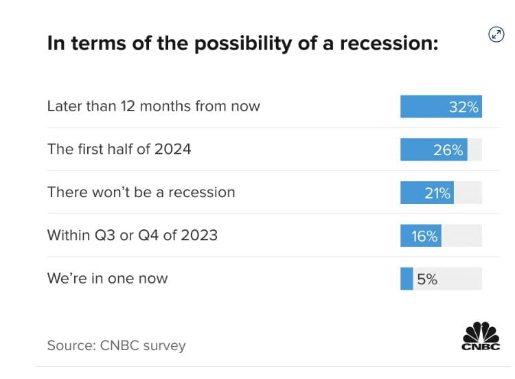 → 올해 안에 경기침체가 올 것이라는 의견은 16%에 불과