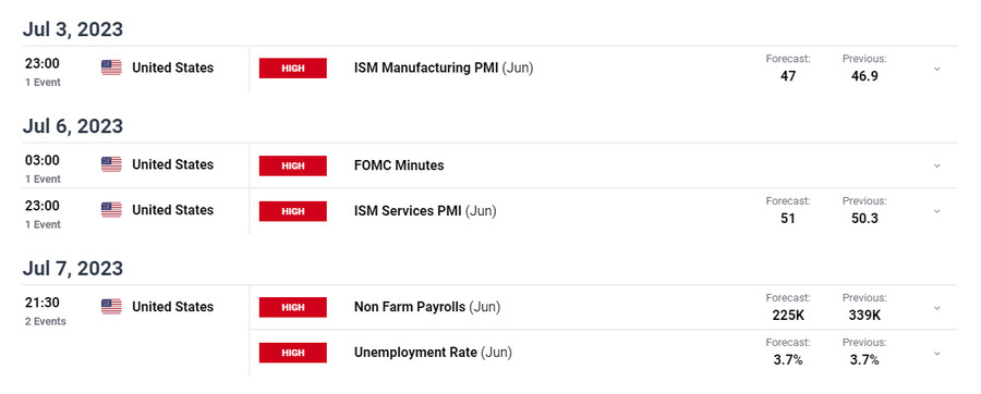 다음주는 7월과 3분기가 시작됩니다. 화요일인 7월 4일이 독립기념일이어서 3일(월)엔 뉴욕 증시가 반나절만 개장하고 4일(화)은 휴장합니다. 데이터 중에서는 7일(금) 발표될 6월 고용보고서가 핵심입니다. 월가는 신규고용을 전달(33만9000개)보다 줄어든 22만5000개 수준으로 예상합니다. 미 공급관리협회(ISM)가 발표하는 6월 제조업, 서비스업 구매관리자지수(PMI)도 봐야 합니다. 또 Fed의 6월 연방공개시장위원회(FOMC) 회의록도 나옵니다.