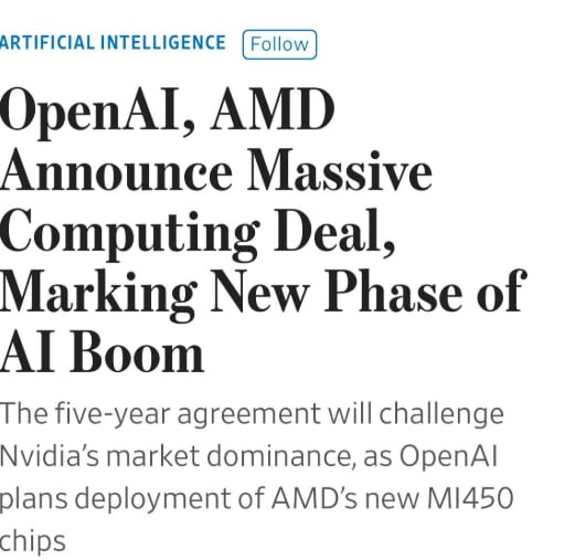 오픈AI가 AMD와 대규모 계약을 맺었다고 발표한 덕분입니다. 계약 내용은 다음과 같습니다.