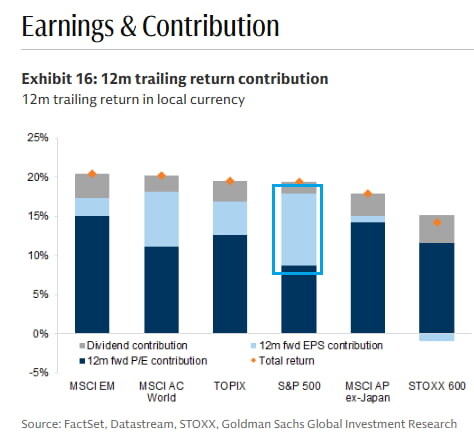S&P 500의 총수익률(약 19%)에서 가장 큰 비중을 차지하는 것은 기업 이익 성장(EPS)