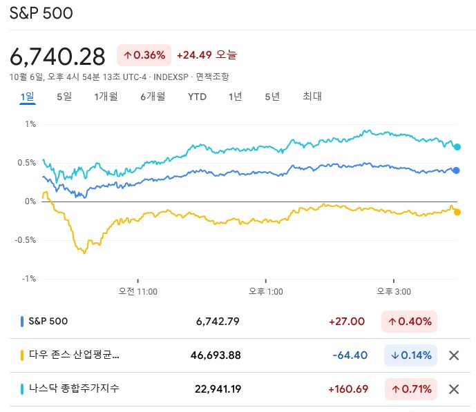 뉴욕 증시는 오픈AI와 AMD 간의 대규모 연간 계약 소식에 힘입어 뜨거운 상승세를 보였습니다. 연방정부 셧다운과 같은 정치적 불확실성은 시장의 '소음'으로 치부되었으며, 투자자들은 오히려 경기 둔화 시 연준(Fed)의 금리 인하 가능성에 기대를 거는 모습입니다. 이로 인해 S&P500 지수는 7거래일 연속 상승했습니다.