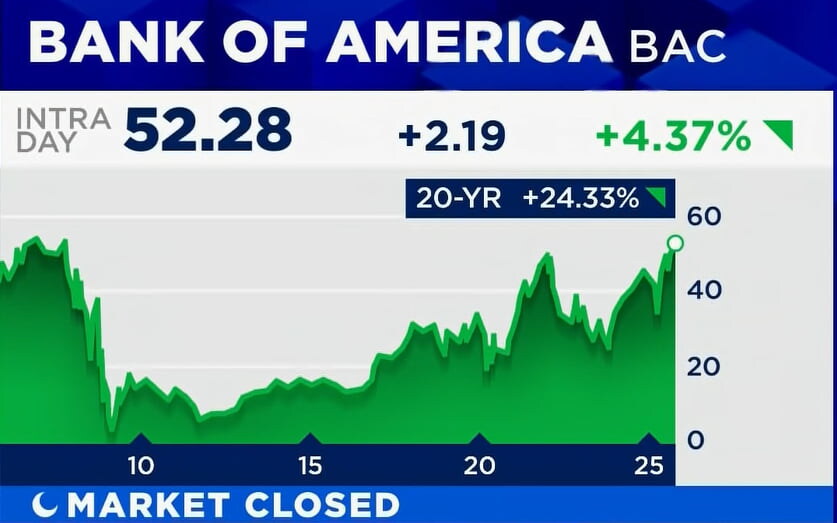 BofA, 3분기 '깜짝' 실적…투자은행 수수료 43% '쑥'·주가 4%대↑