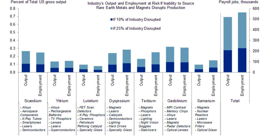 희토류 공급 중단 시, 미국 산업 생산과 고용에 미칠 충격