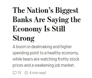 WSJ, "미국 대형 은행들, "경제는 여전히 강하다"고 진단"