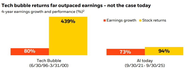 현재 AI 랠리는 '닷컴 버블'과 다르다: 이익이 뒷받침하는 상승 (블랙록)
