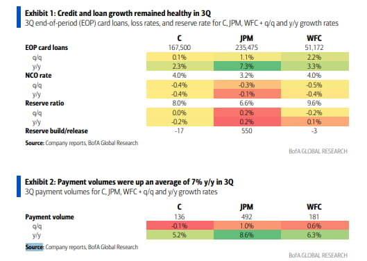 씨티그룹(C), JP모건(JPM), 웰스파고(WFC) 3분기 카드 대출 및 결제 데이터