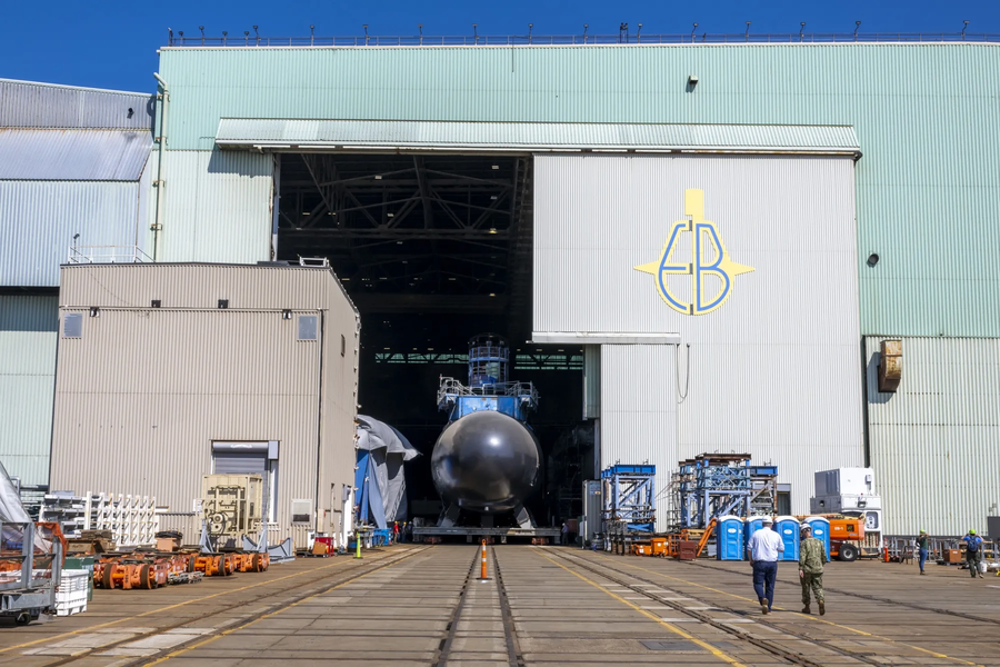 코네티컷주 그로턴의 제너럴 다이내믹스 일렉트릭 보트 조선소에 있는 버지니아급 핵추진 공격 잠수함 USS 아이오와. 이 함정은 2025년 4월 취역했다. 출처: 제너럴 다이내믹스 일렉트릭 보트