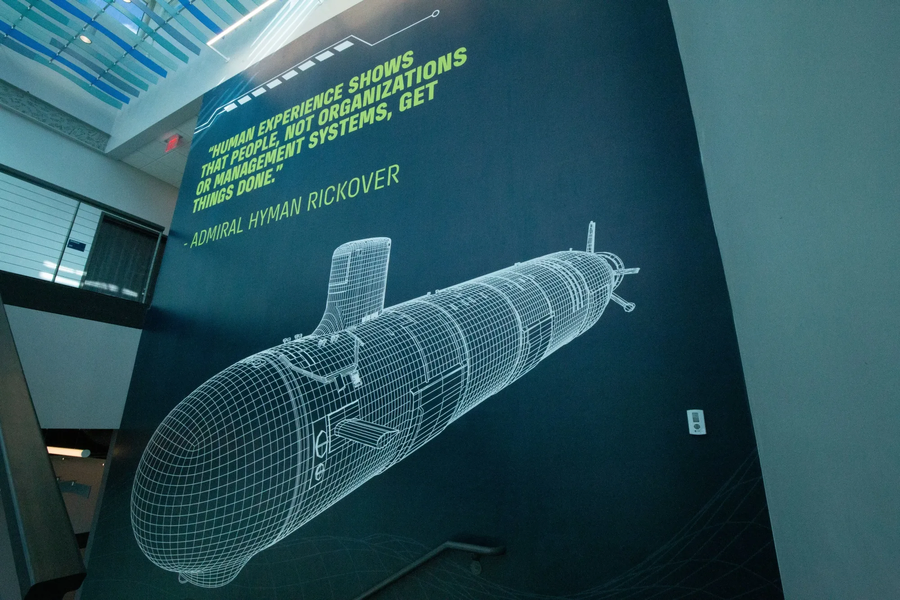 약 10만 제곱피트(약 2,800평)에 달하는 이들의 실습장 벽면에는 미 해군 공격 잠수함의 모습이 바닥부터 천장까지 그려져 있어 이 시설의 중요한 임무를 상징적으로 보여주고 있습니다. 해군은 이 잠수함 함대를 유지하고 확장하는 데 총력을 기울이고 있습니다.
