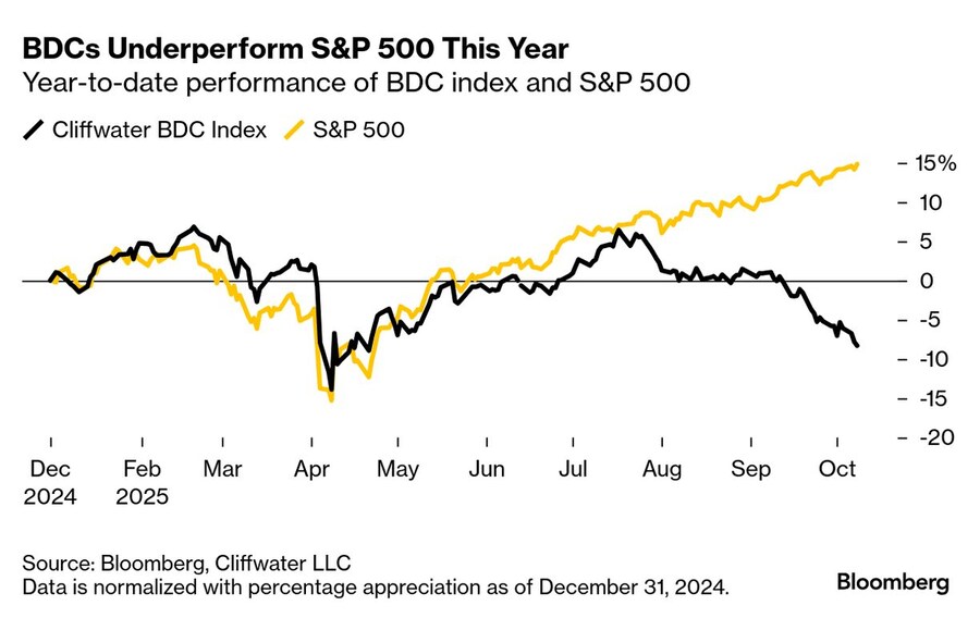 차트: 올해 BDC, S&P 500 대비 저조한 성과