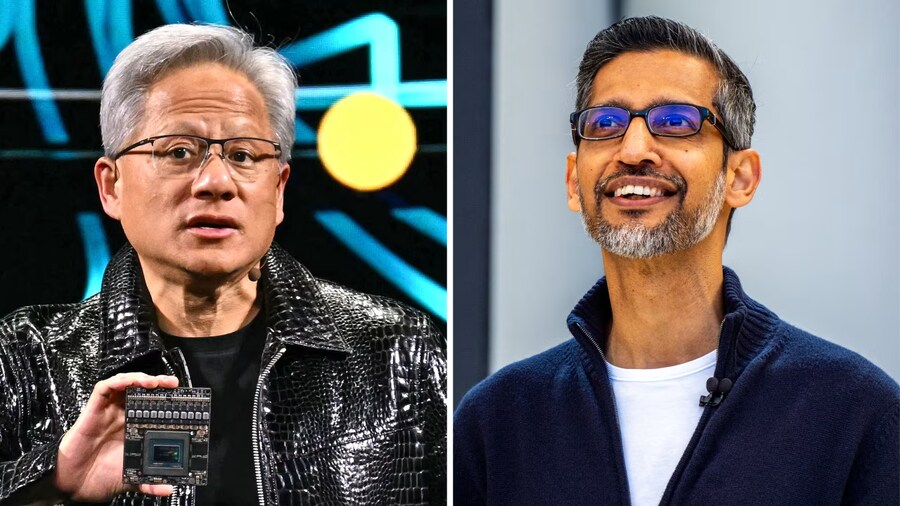 젠슨 황(Jensen Huang) 엔비디아 CEO(왼쪽)와 순다르 피차이(Sundar Pichai) 구글 CEO(오른쪽). (사진 제공: PATRICK T. FALLON/AFP/Getty Images; CAMILLE COHEN/AFP/Getty Images)