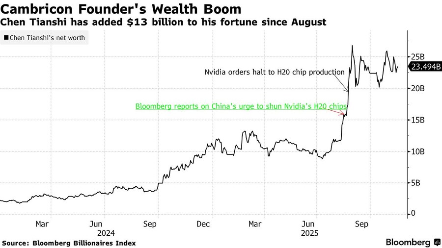 [차트 설명: 캠브리콘 창업자의 자산 급증]