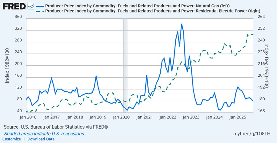 • 2023년 이후 괴리 심화: 천연가스 가격이 하락 안정세를 보일 때도, 주거용 전기 요금은 계속 상승했습니다.
