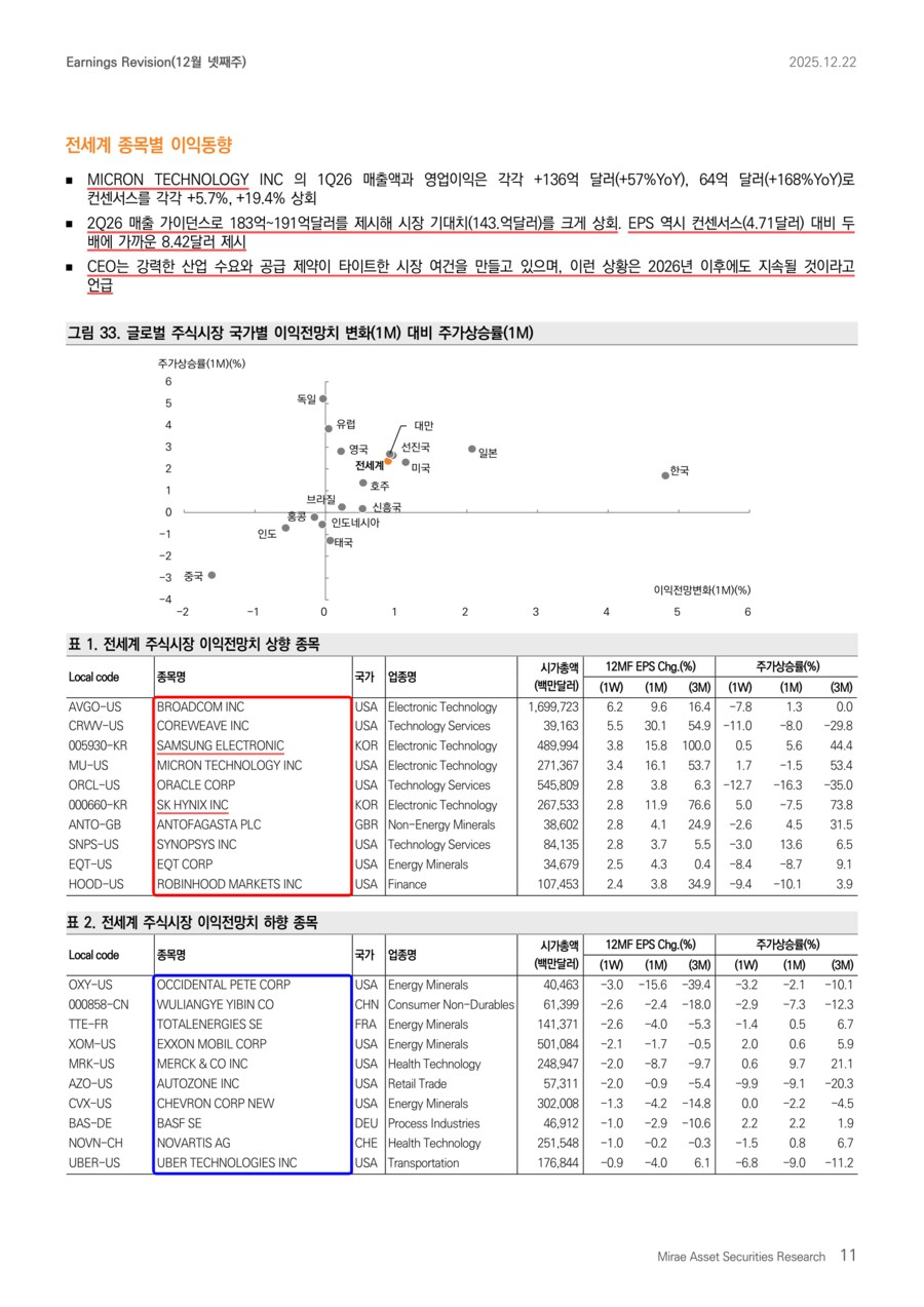 [퀀트] [미래에셋증권 전략/퀀트 유명간] 주간 이익동향(12월 4주차)2025.12.21 AM 11:05