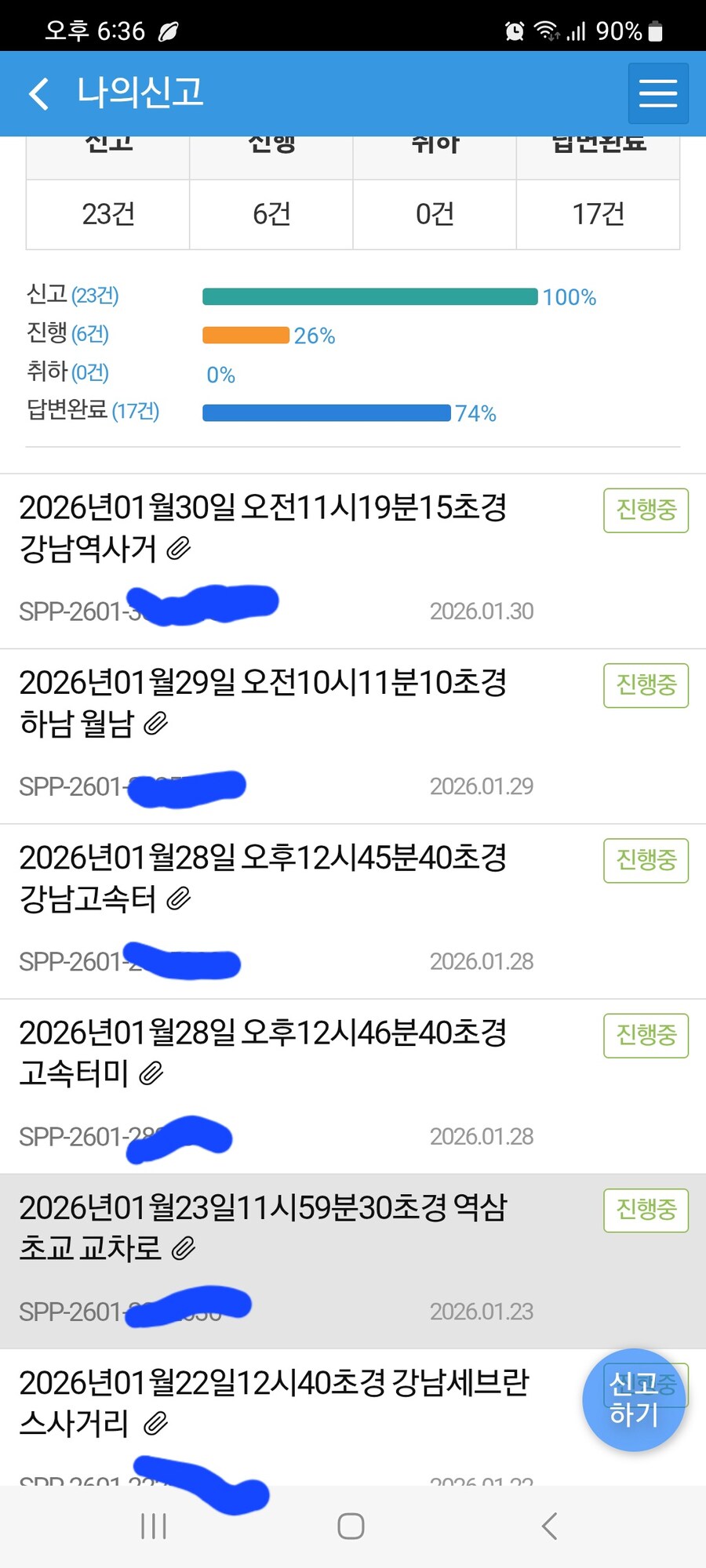 웬만하면 개빡칠때만 신고해서 한달에 한번 할까말까인데