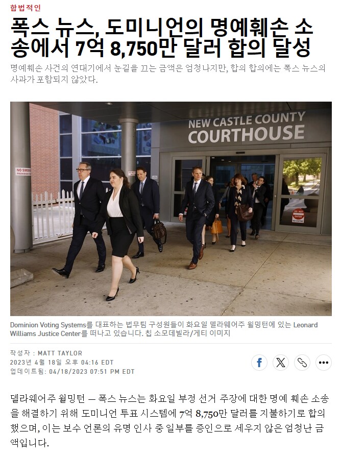 이는 미국 역사상 최대의 언론명예훼손 합의 금액이다.