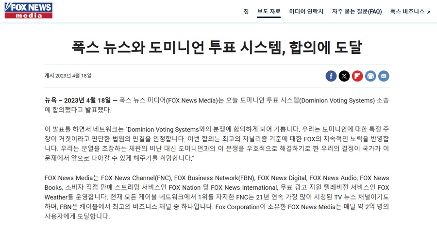 부정선거를 주작했다는 폭스 뉴스의 주장에 대해