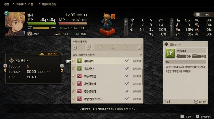 [게임] 파판택 리마스터 직업조합 팁 2번째와 약간의 정보.2025.11.18 PM 08:29
